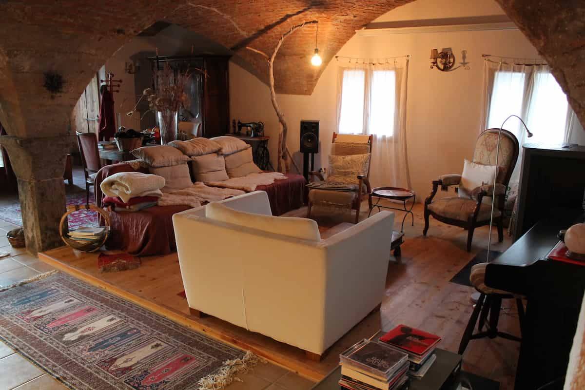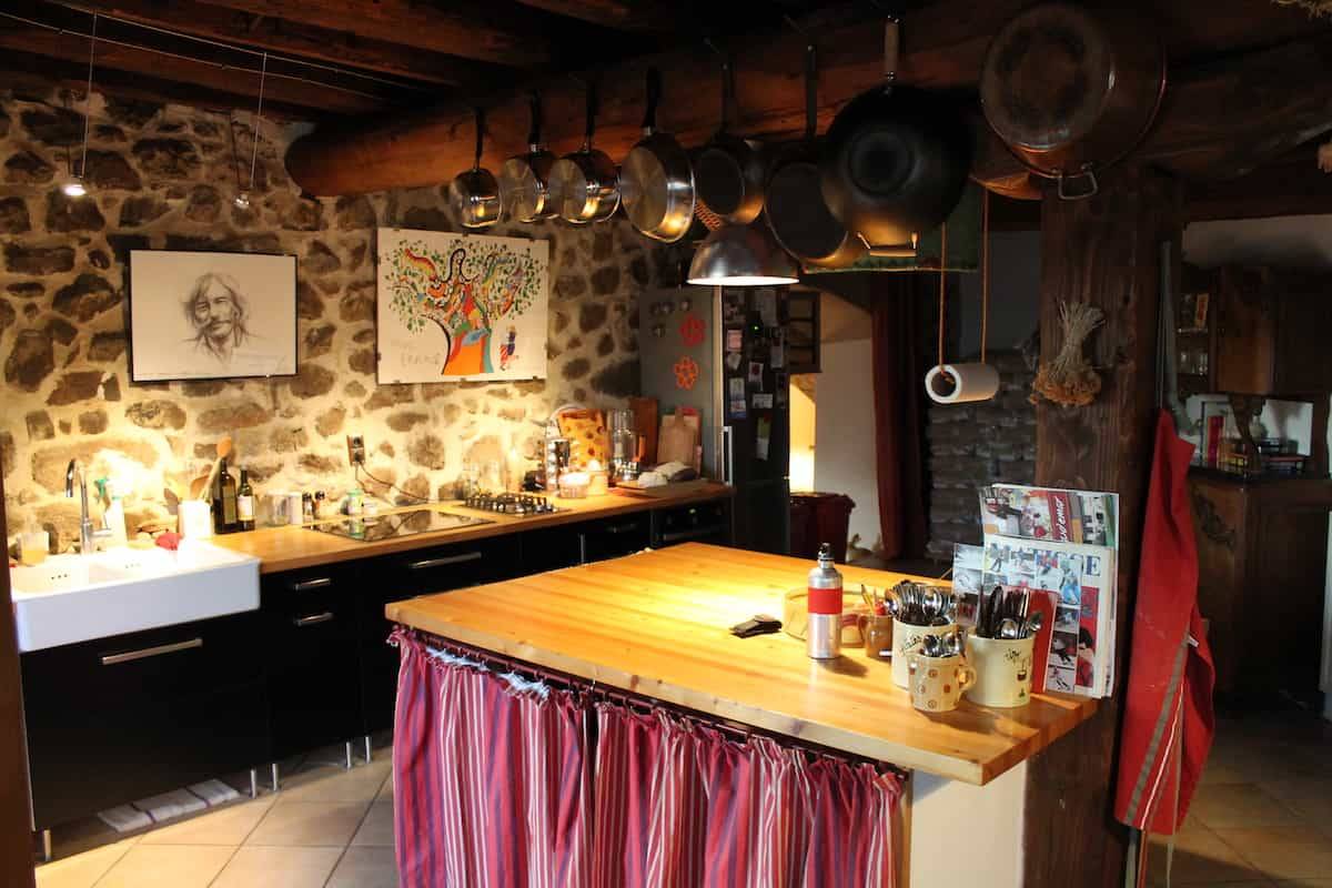 On the first floor, you'll find a spacious traditional vaulted room with a large dining table and a lounge area, as well as the kitchen where Gil and Laurence cook breakfast and dinner (optional) with mainly local products.