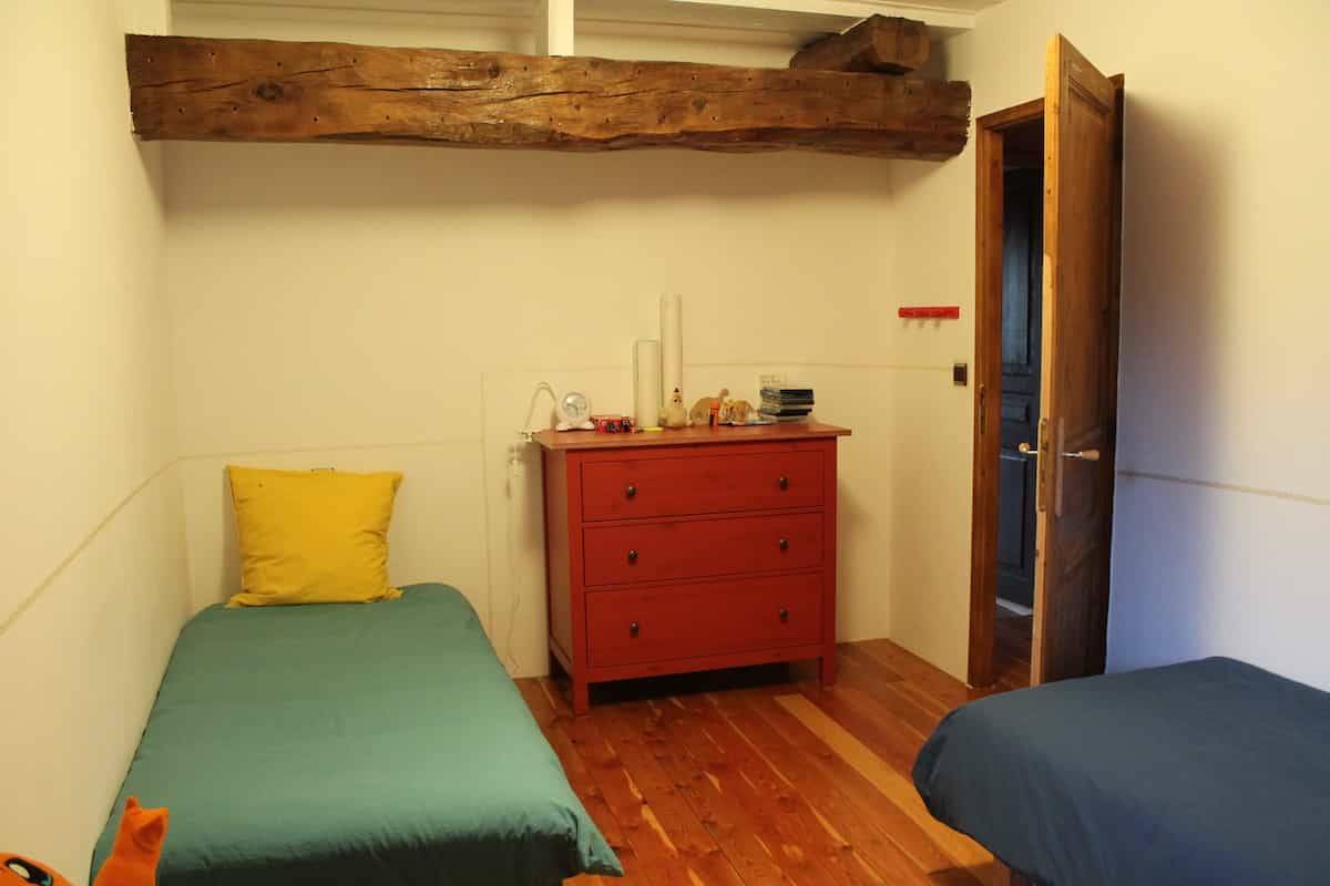 A twin room with 2 single 90 cms beds, basic but comfortable. Bathroom and toilets are shared with two other rooms (Green Room and Cherry Room).