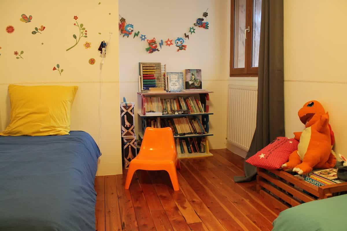 A double room with a 140 cms bed, basic but comfortable. Bathroom and toilets are shared with two other rooms (Green Room and Children's Room).